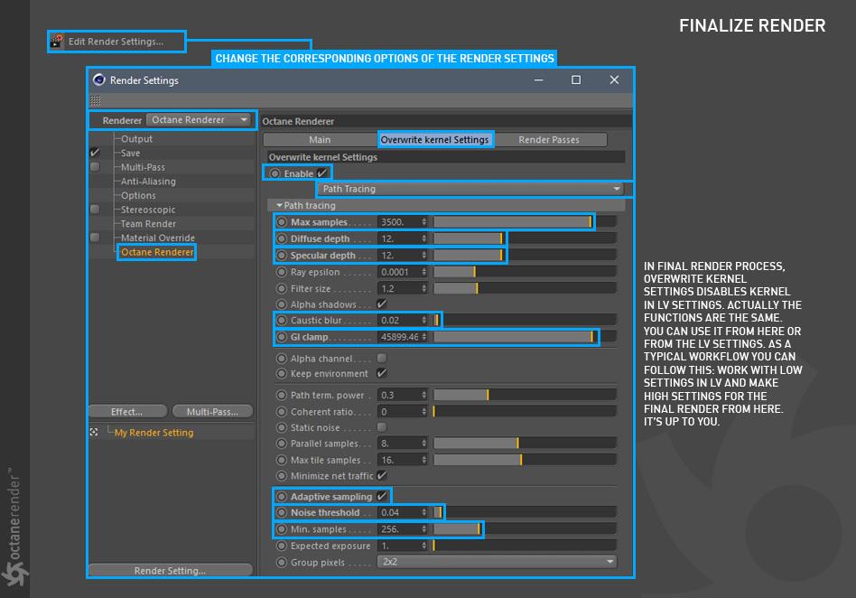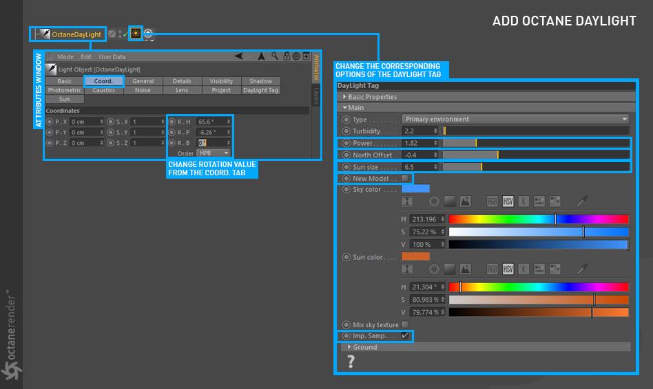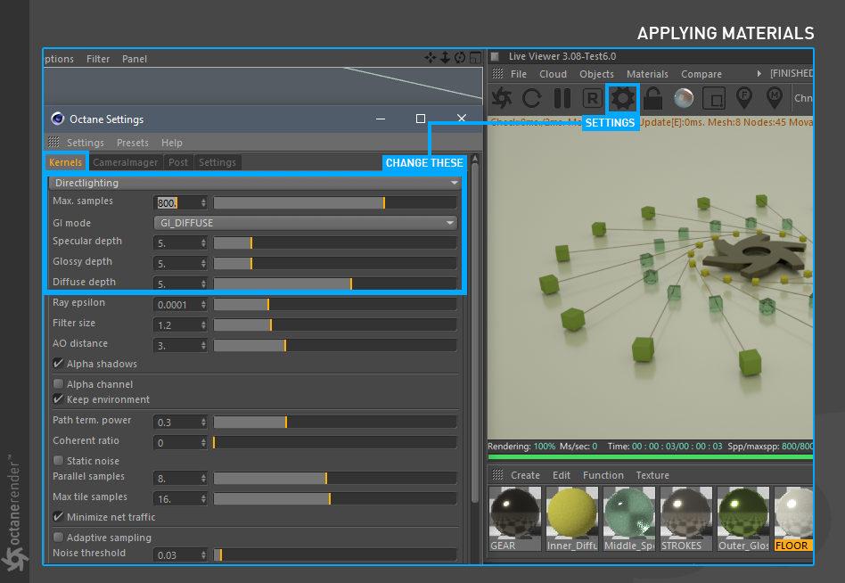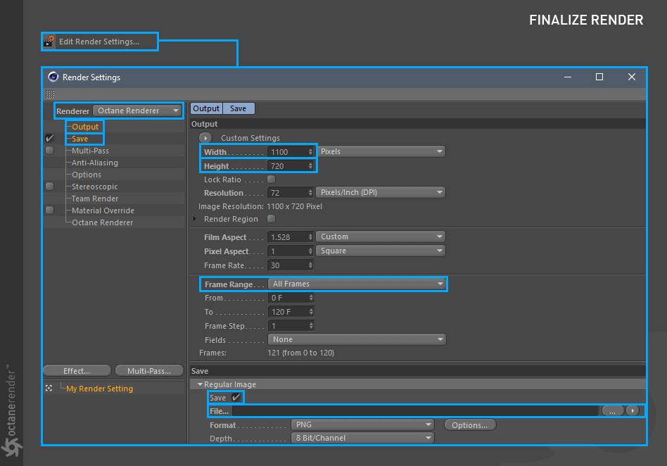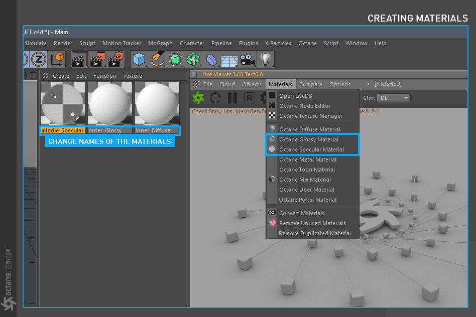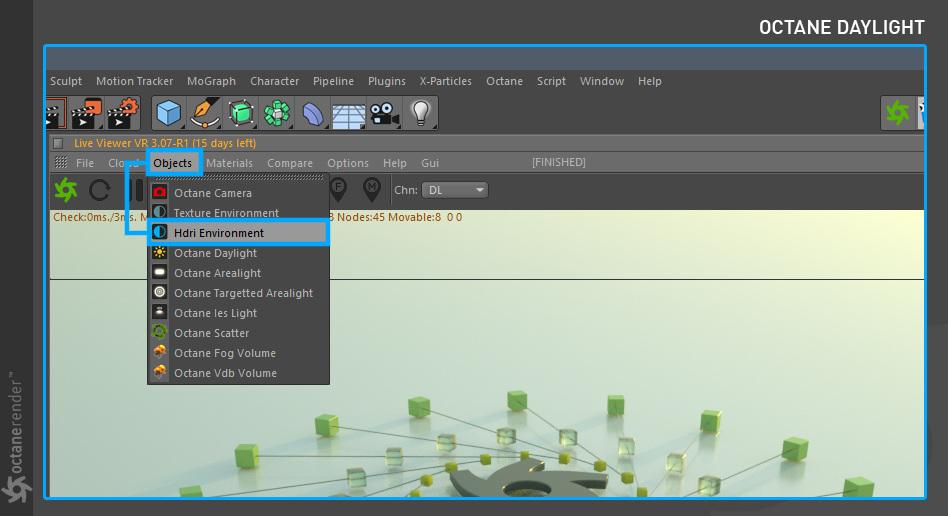 要使用 Cinema 4D 的 OctaneRender 进行渲染,请遵循典型的工作流程: