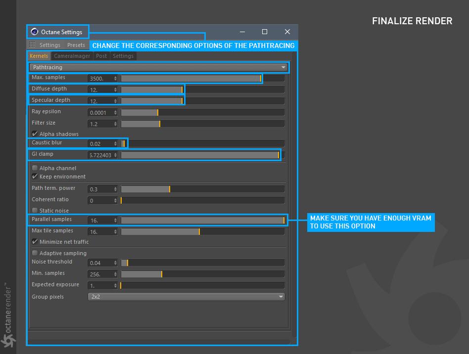 控制 VBD/Octane 音量设置。产生更高分辨率结果的设置也会消耗更多 VRAM(除了增加渲染时间)。根据您的拍摄,您可能不需要像您想象的那样高的设置。