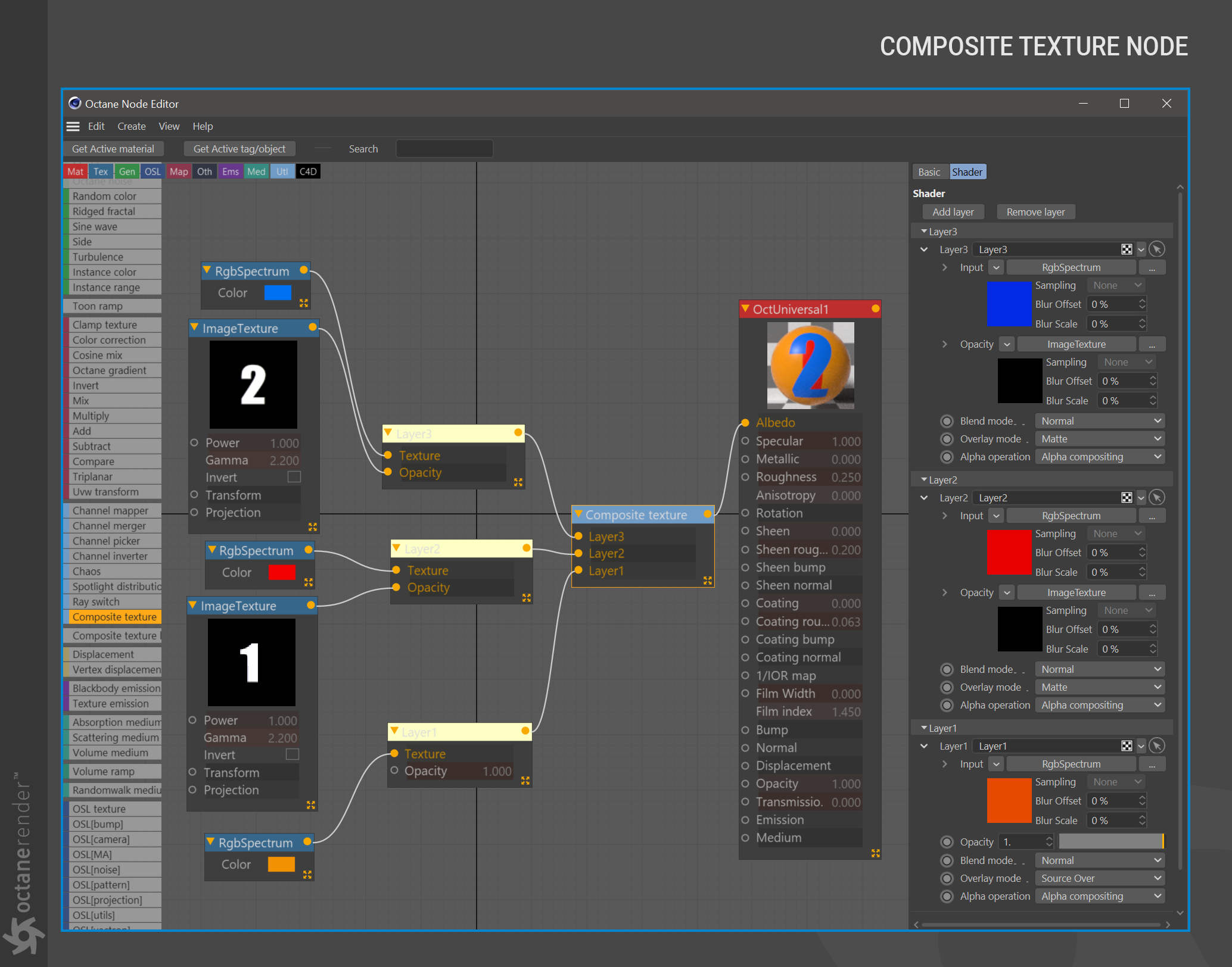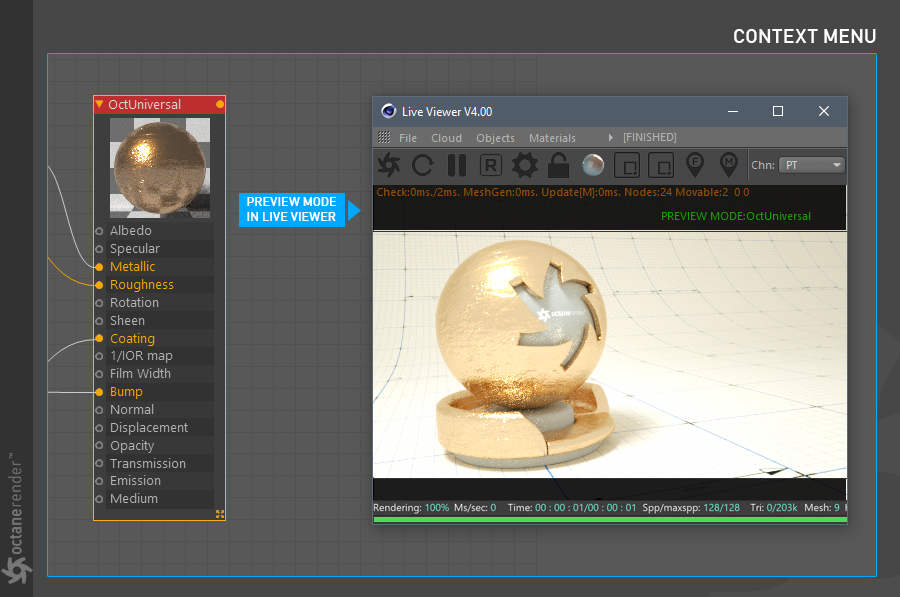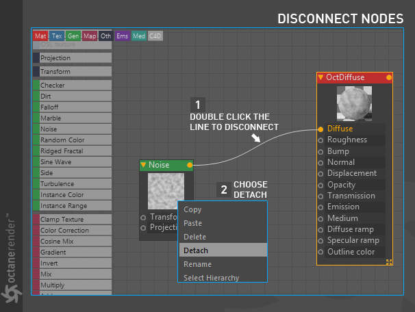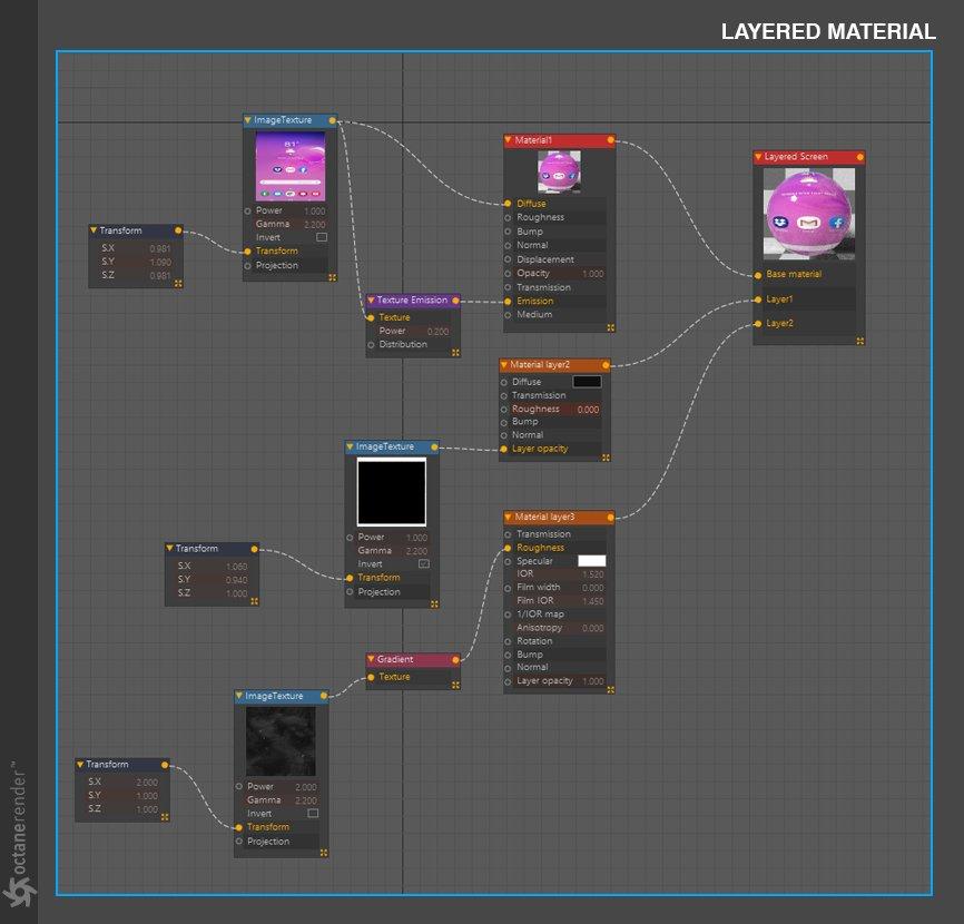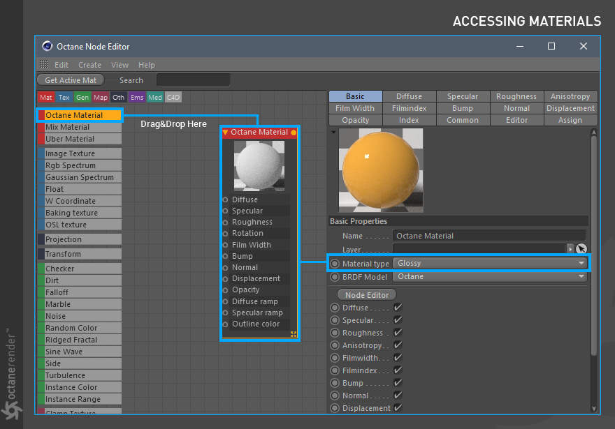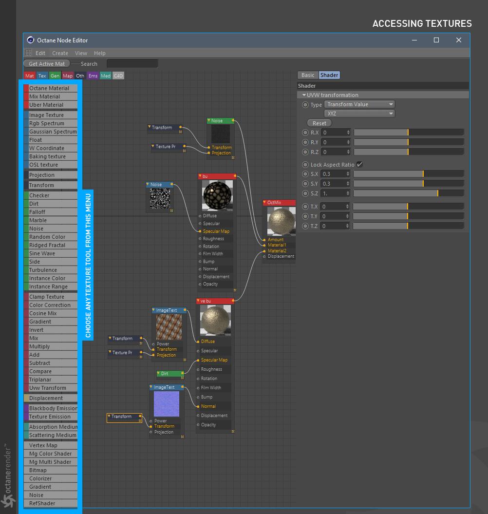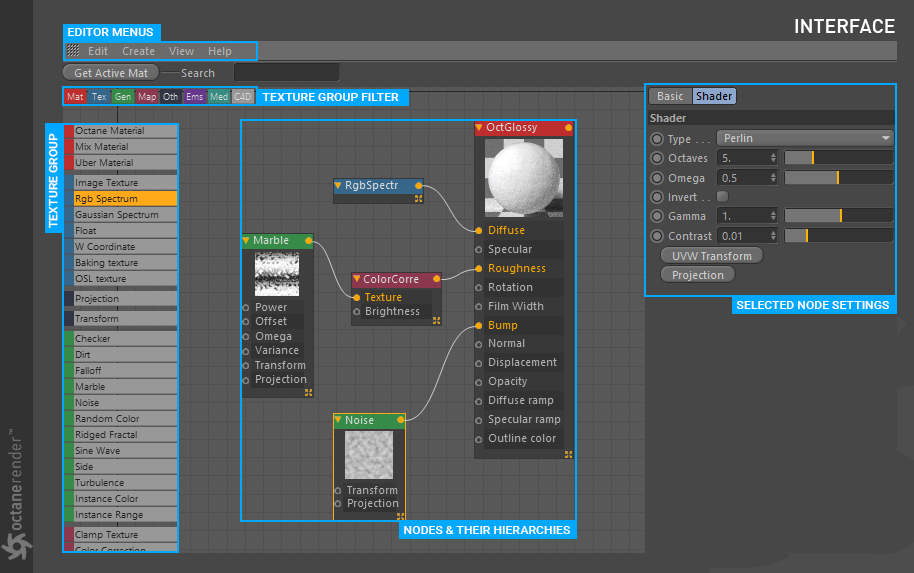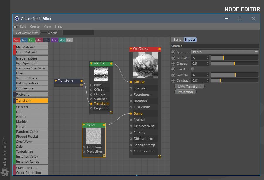 - Octane 节点编辑器,您可以在其中为场景中的所有对象创建惊人的、物理准确的、照片般逼真的材质。