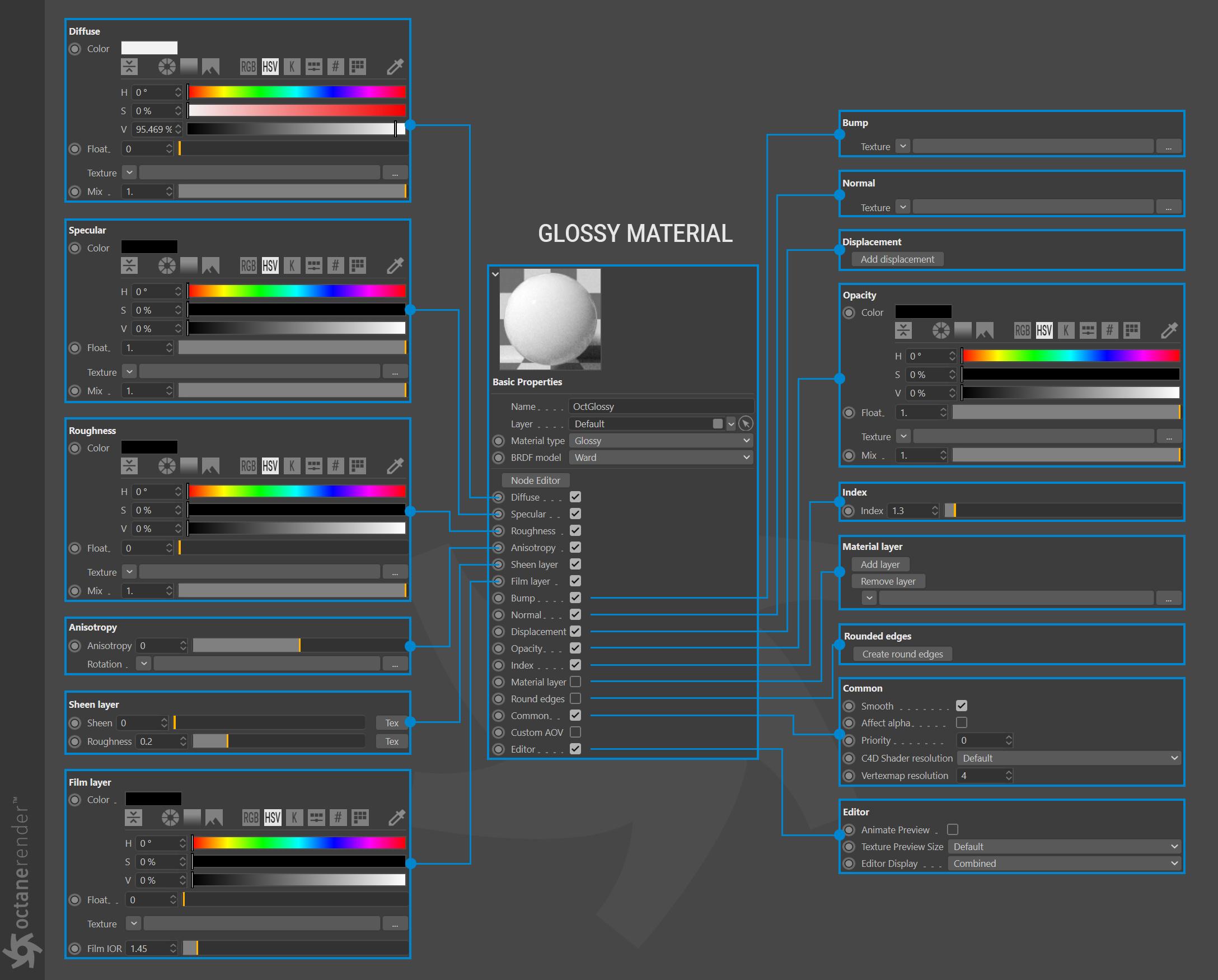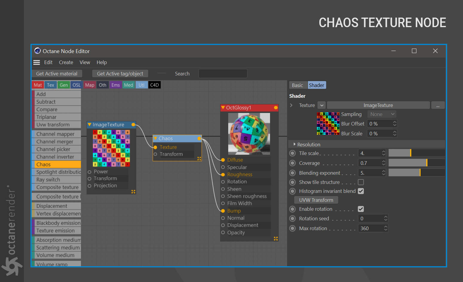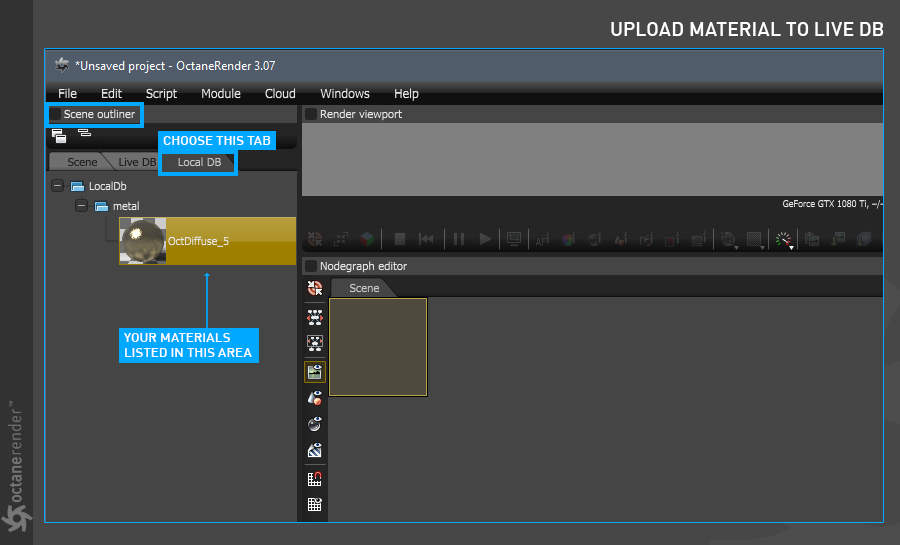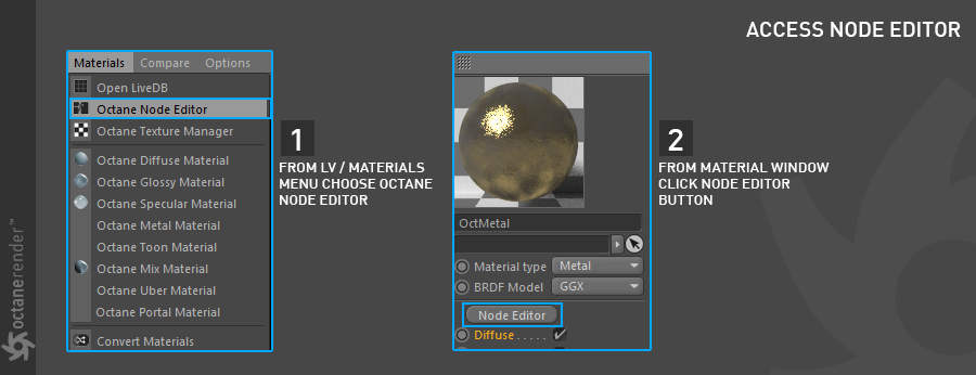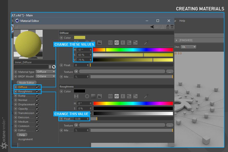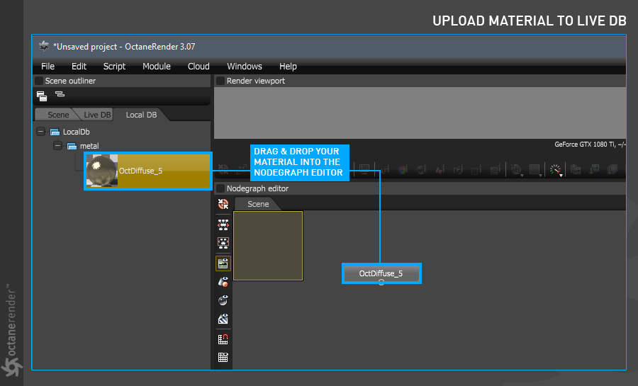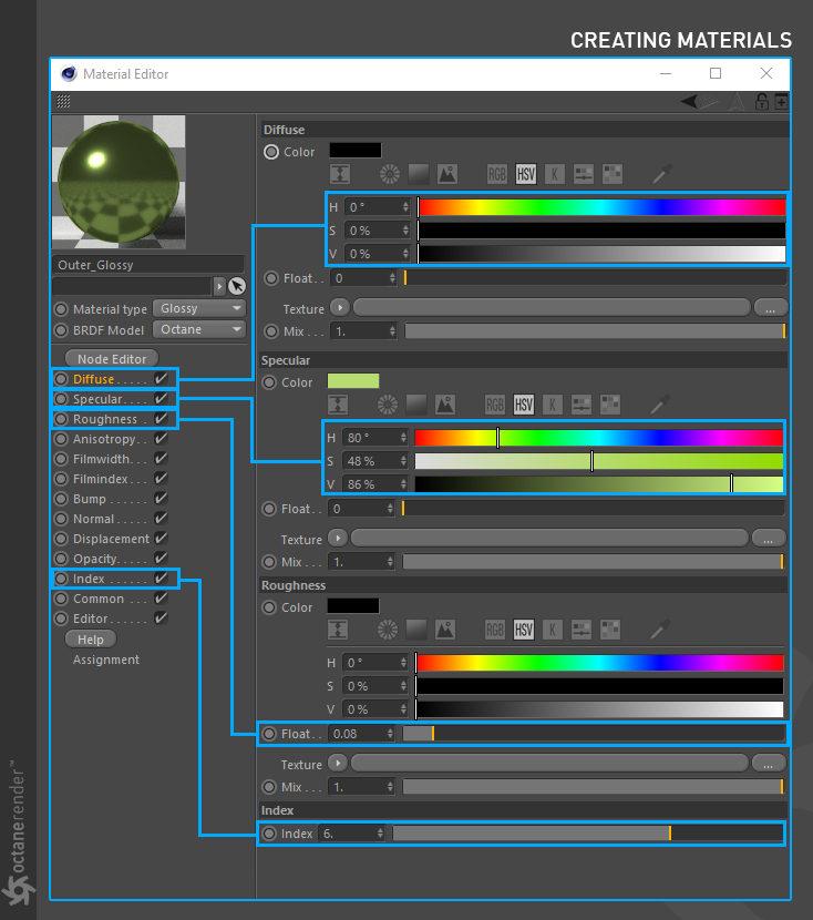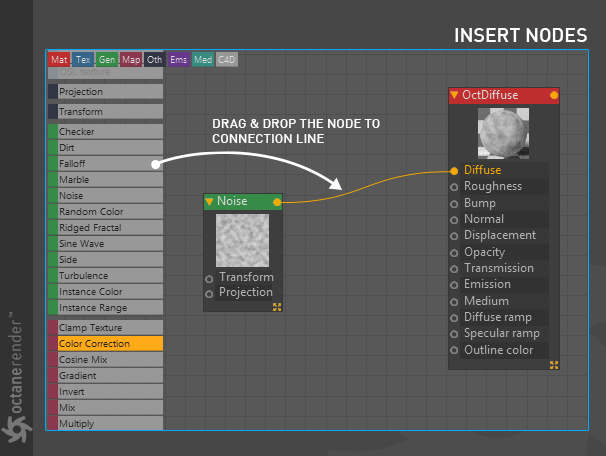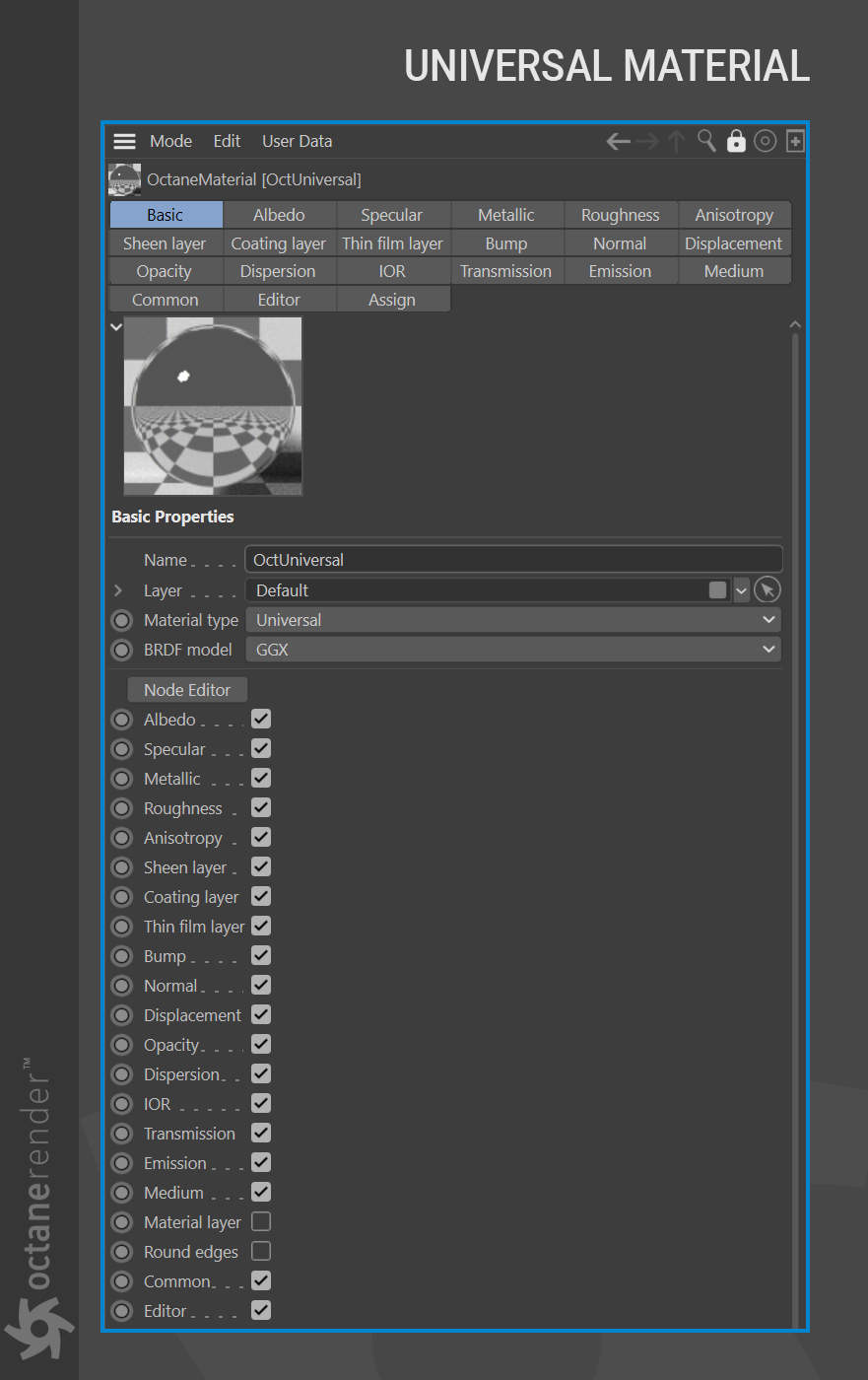 - Octane 节点编辑器,您可以在其中为场景中的所有对象创建惊人的、物理准确的、照片般逼真的材质。