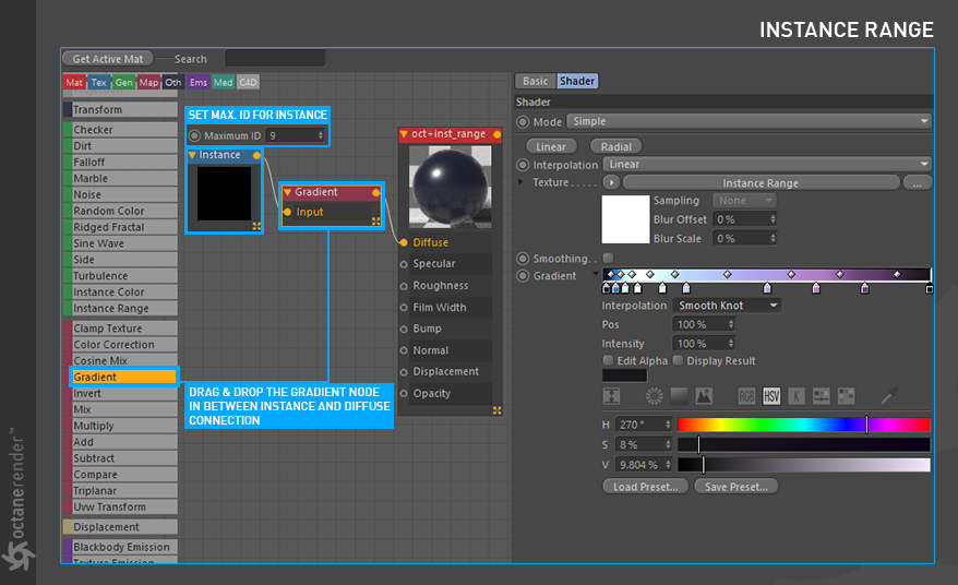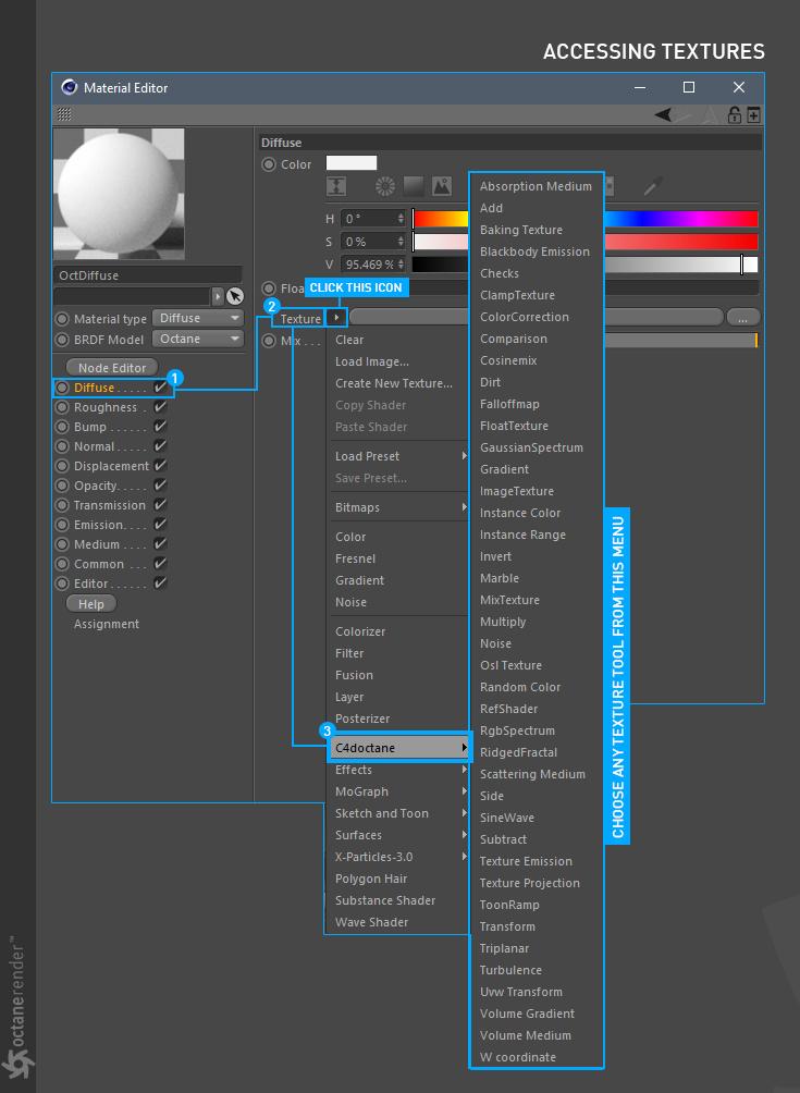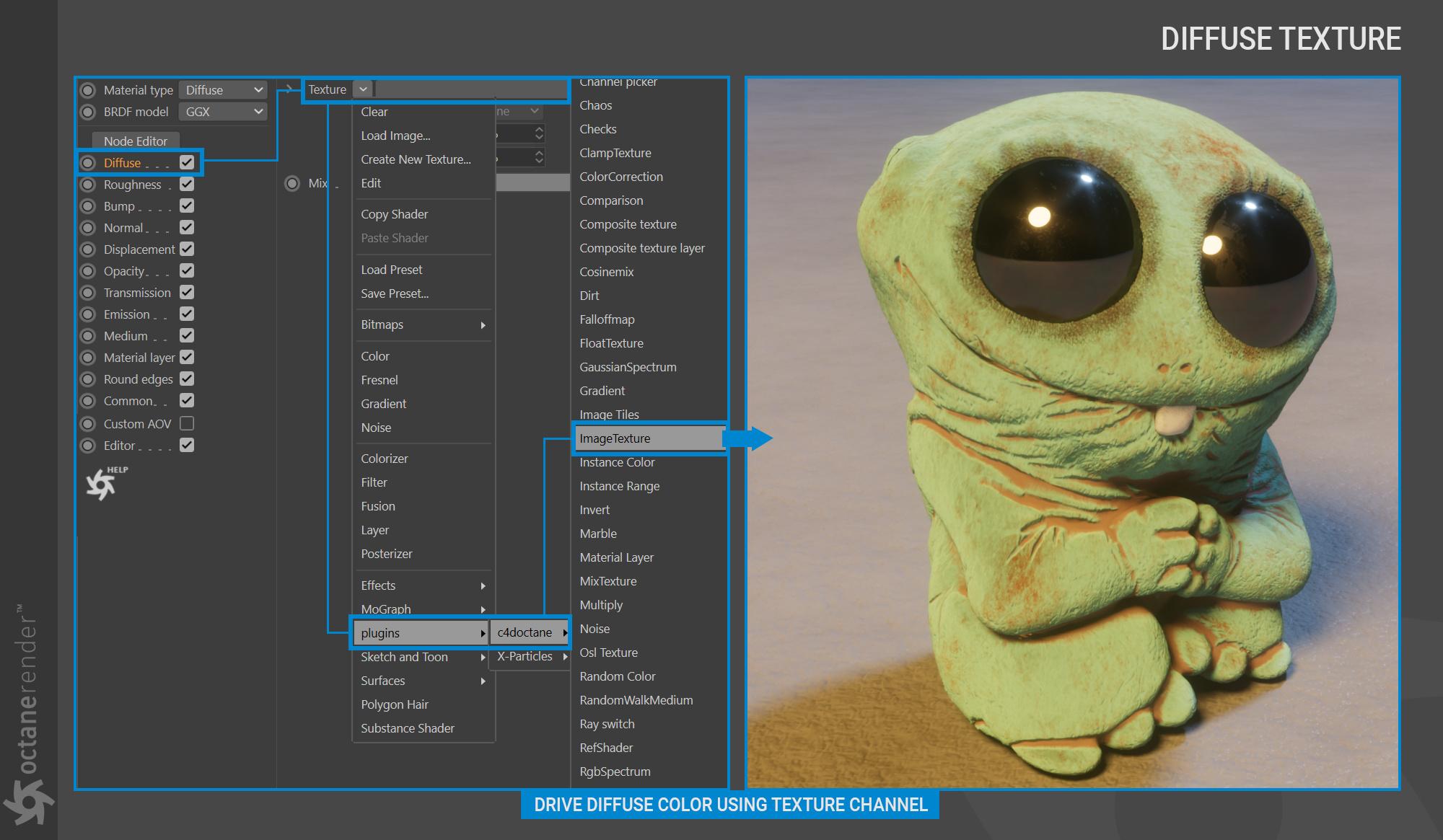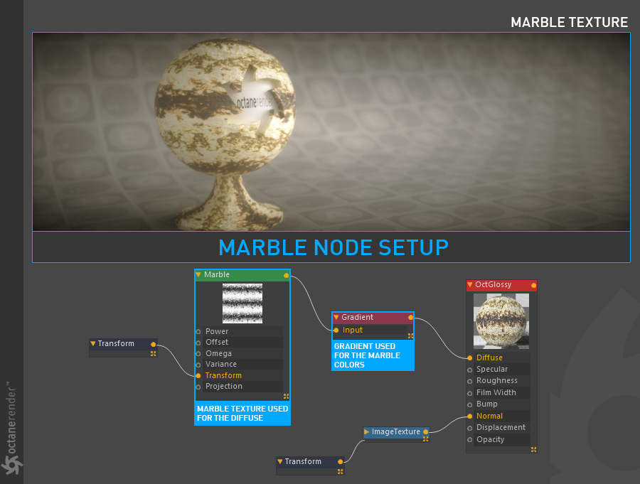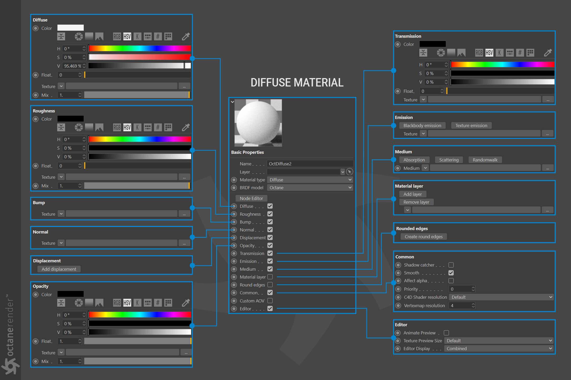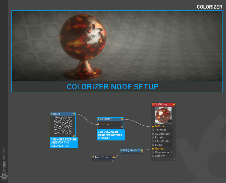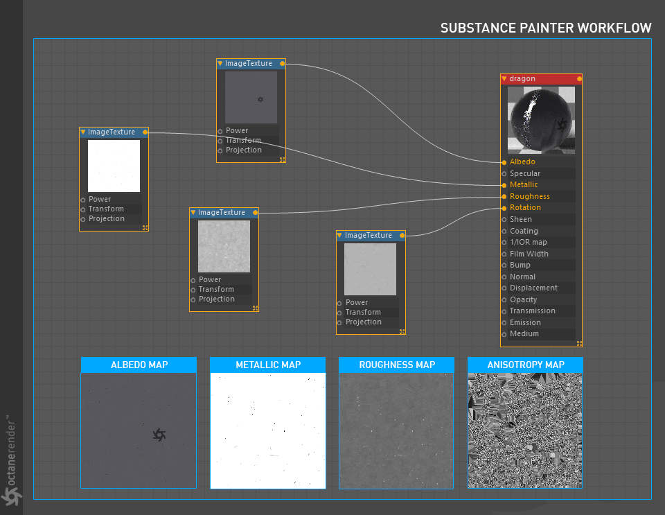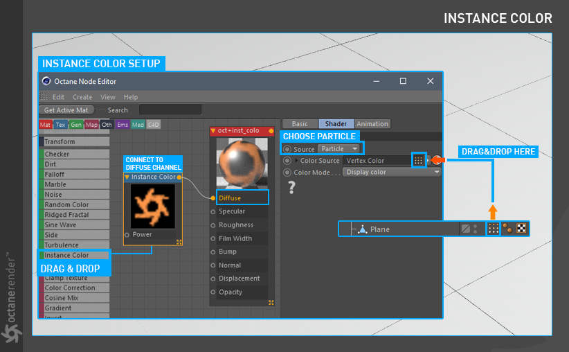 - Octane 节点编辑器,您可以在其中为场景中的所有对象创建惊人的、物理准确的、照片般逼真的材质。