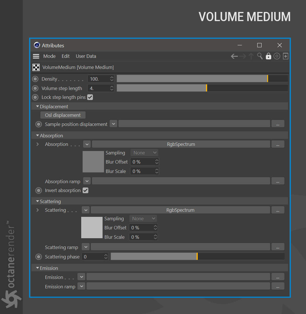 - 添加了从 Alembic 文件导入 RGB/RGBA 顶点属性的支持。请注意,RGBA 属性的 alpha 分量在 Octane 中被丢弃,纹理只能产生光谱、RGB 颜色或灰度值。