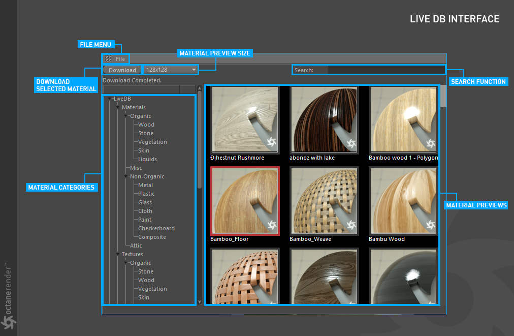 - 许多不同类型材质的定义,包括帮助您入门的在线材质数据库 (LiveDB)。