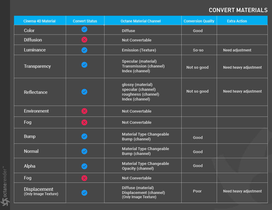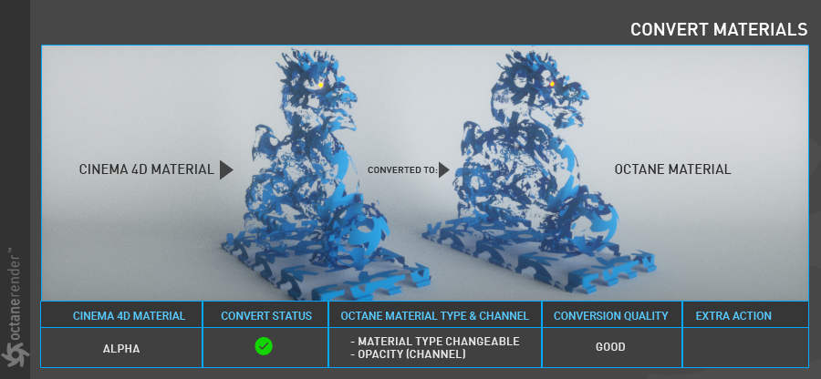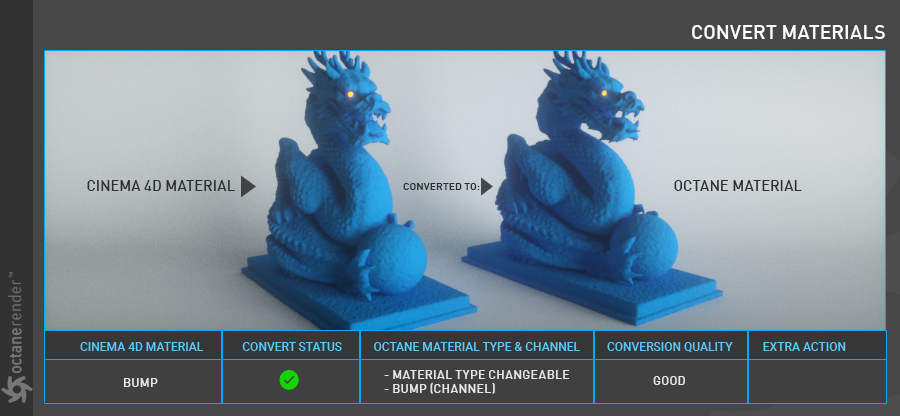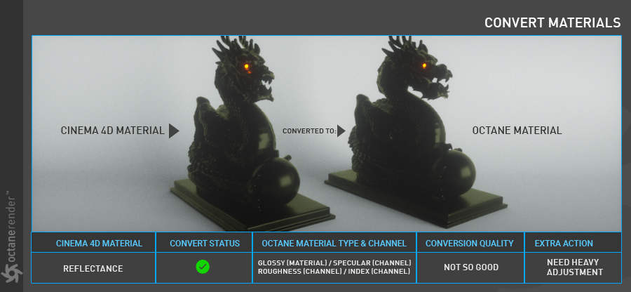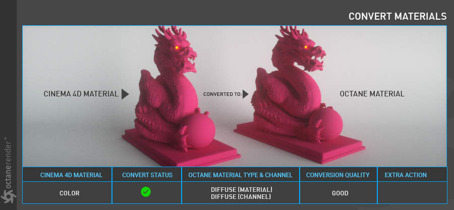 - 将您的 Cinema 4D 材质转换为 Octane 材质的工具。