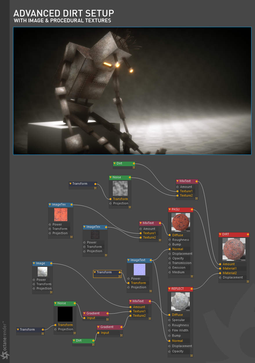 Octane 现在可以利用 RTX 硬件加速来评估以前仅支持 CUDA 的着色器,例如新的污垢着色器。