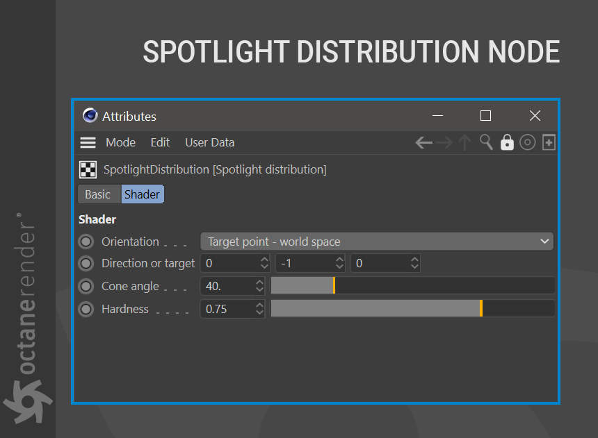 - 聚光灯分布:生成可用于快速将发射器变成聚光灯的分布,无需 IES 纹理。
