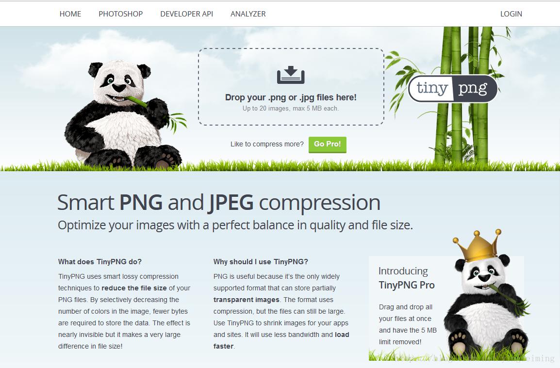 TinyPNG 是一个网页版 PNG 图片专业压缩优化工具,可以在线批量压缩PNG图片,压缩率高达70%,但是基本上看不出与原图有什么区别!目前完美支持PNG GIF JPG等多种格式的图片压缩,是一款很棒的在线压缩工具。