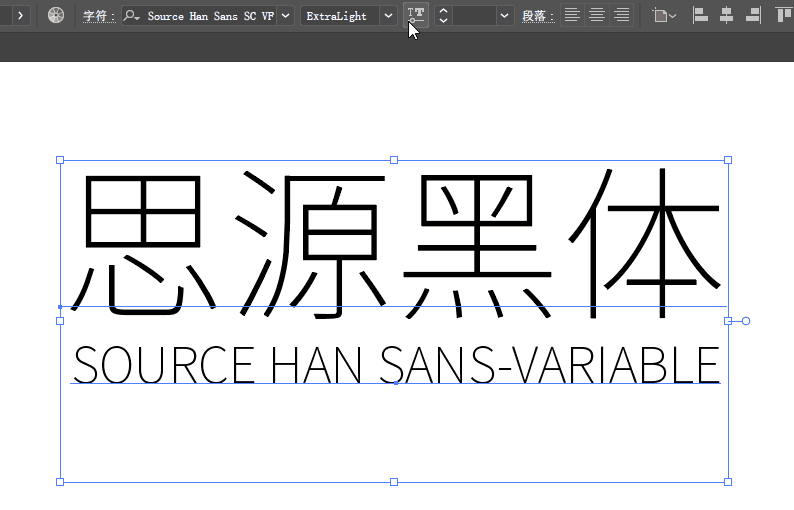 提示:可变字体需要系统及软件的支持,并不是任意软件都支持可变字体的。目前PS/AI 2018以上的版本都支持可变字体。