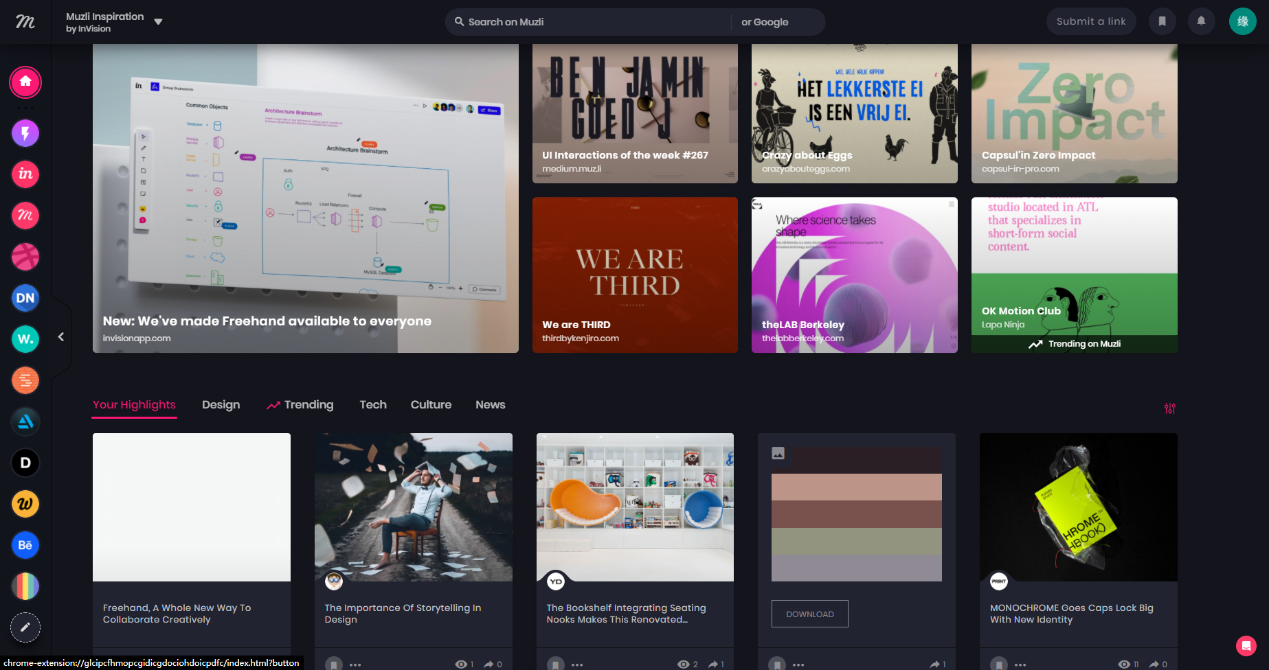 安装插件完成后,你只要打开一个新的浏览器标签,就会自动出现Muzli的页面,让设计与你朝夕相伴。